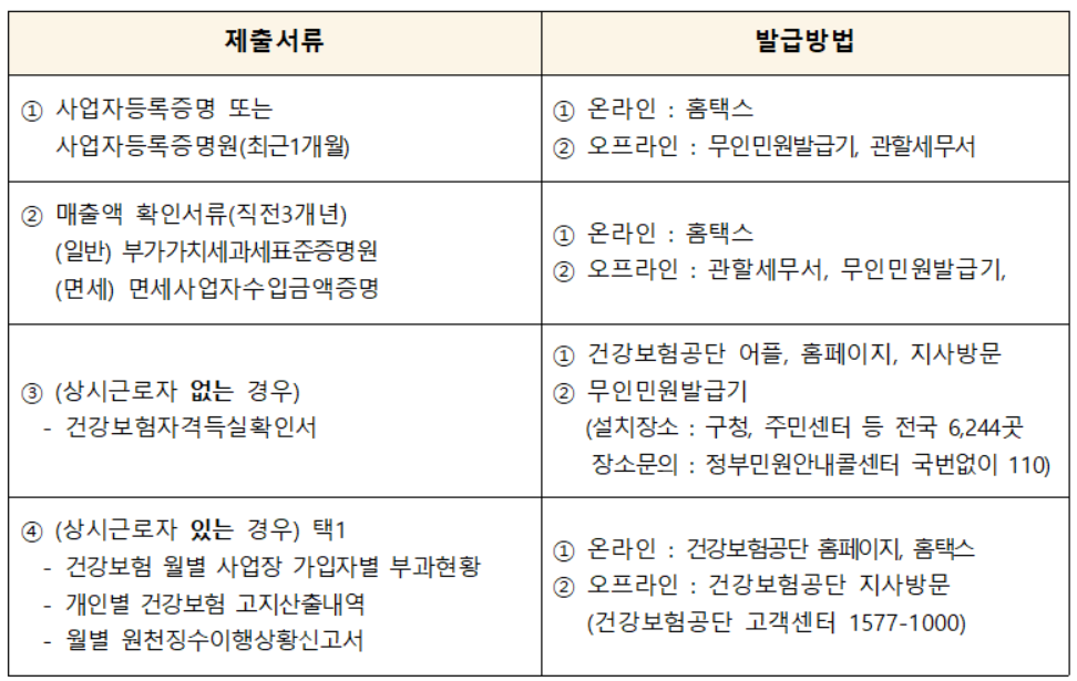 업종별로 정해진 매출 기준도 충족해야 합니다. 예를 들어: