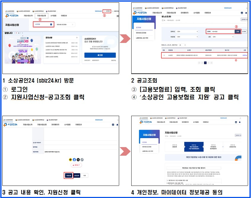 기존에 고용보험에 가입해 있었다면, 소상공인시장진흥공단의 ‘소상공인24’ 누리집에 접속해 ‘2025년 소상공인 고용보험료 지원사업’을 검색하세요. 온라인 신청이 가능합니다.